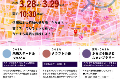 今年度もやります、うらまち探検。信州松本の昭和の盛り場「うらまち」。レトロでディープなまちを探検しよう!3/22(土)~23(日)は、ぜひうらまちへ! ■うらまち未来ステージ&マルシェうらまちの空き店...